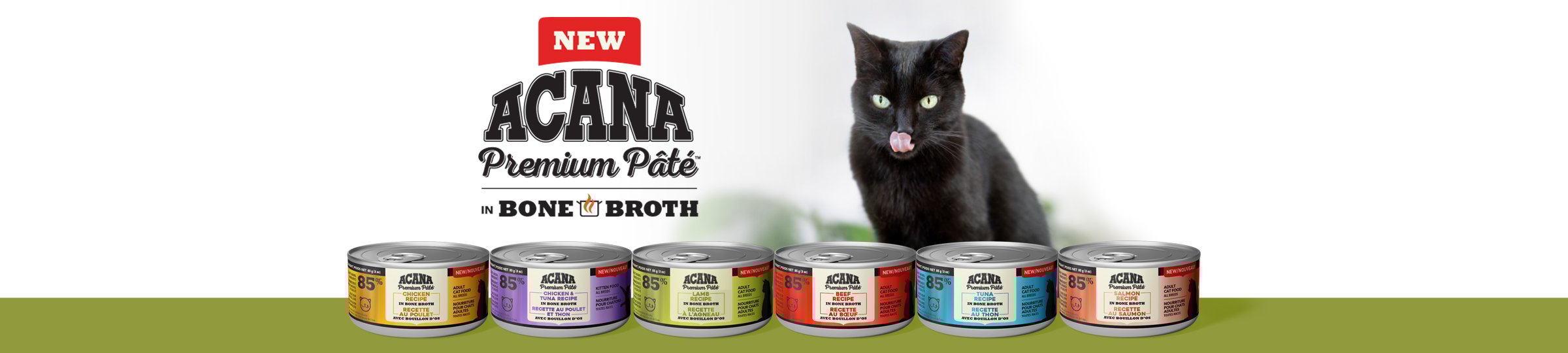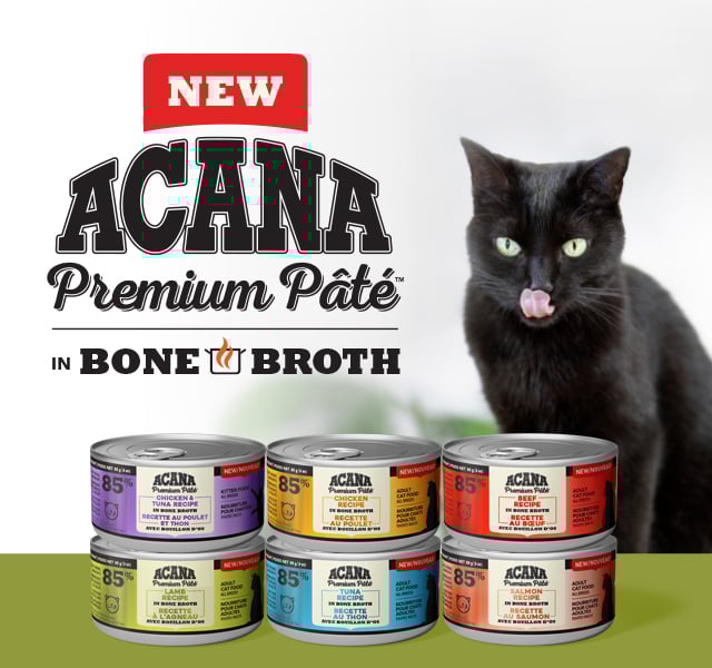 NEW ACANA™ Premium PâtéTM is rich in raw* animal ingredients to nourish your cat, plus delicious bone broth for added hydration and flavor your cat will crave.